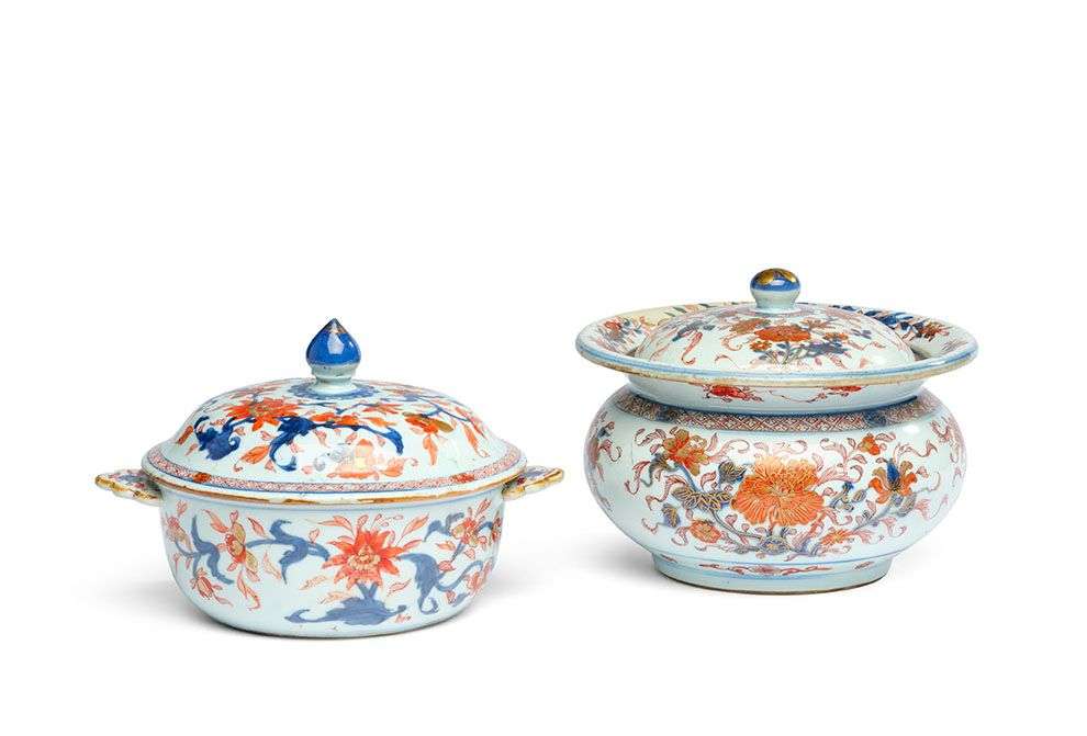 Imari comprenant un bouillon couvert et un pot de chambre couvert.