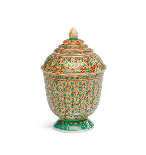 Nam Thong décorée aux émaux polychromes sur fond or de boutons de lotus « lai phum kao ».