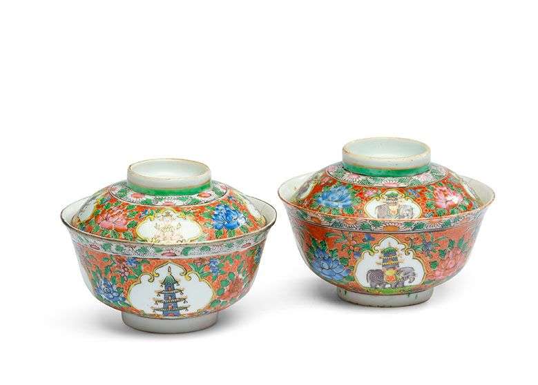Deux bols couverts en porcelaine Lai Nam
