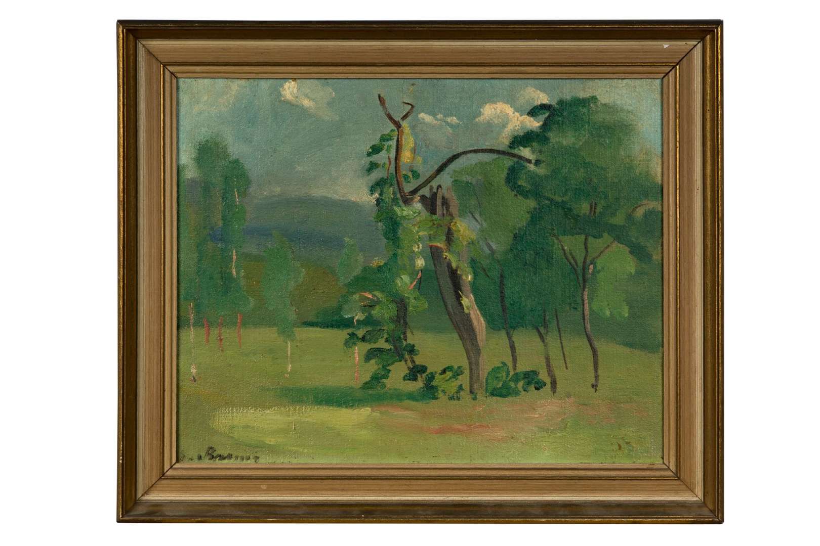 Oil on canvased cardboard, signed lower left, inscribed '3180/Charmy' on a label on the stretcher