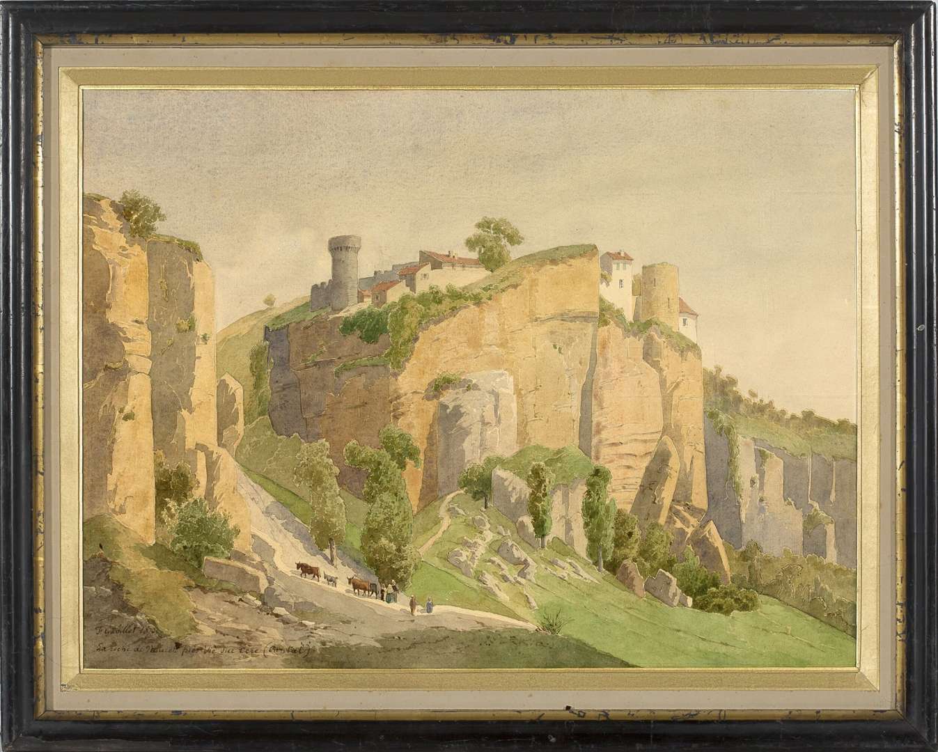 Watercolor and graphite on paper, signed, dated '1870' and inscribed 'La roche de Nouret près Vic sur Cère (Cantal)' lower left