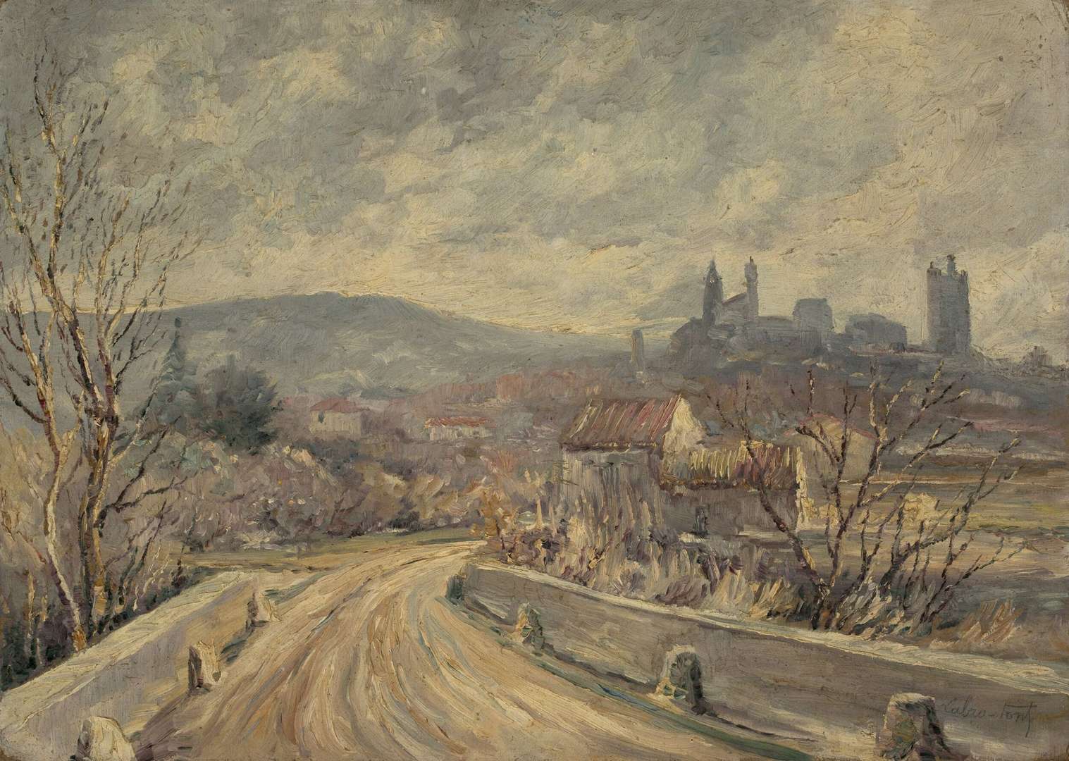Louis Labro-Font naît à Paris en 1881. Architecte de formation et élève d’Henri Deglane à l’École des Beaux-Arts, il fréquente le milieu artistique parisien, peut-être même l’atelier de Camille Pissarro comme on le lit parfois. En 1917, on le retrouve domicilié à Ermont, à quelques kilomètres d’Argenteuil. Dans les années 1930, Labro-Font se rapproche du Vaucluse et de la Drôme, terres de ses attaches familiales. En 1938, il prête des paysages du Ventoux et de Provence au musée de Carpentras. Le livret de l’exposition est préfacé par Jean Giono et par Frédéric Mistral, neveu du grand écrivain provençal. La presse locale admire la clarté, la finesse et la simplicité de son art. En 1942, « La Croix Magazine » consacre un long article à ses œuvres, décrites comme une peinture poétique et musicale : « symphonie de couleurs, mélodie des lignes », où l’équilibre des tons et des lumières dépasse la simple représentation du paysage pour exprimer l’âme du Haut-Comtat. Installé définitivement à Valréas, Labro-Font reste fidèle à ses amitiés et à son territoire. Après la guerre, il y anime un cercle d’artistes et d’intellectuels, véritable « salon des arts et des lettres », fréquenté par des personnalités locales, musiciens et lettrés. Le 21 juillet 1952, il s’éteint à Valréas à l’âge de 71 ans. Son atelier est dispersé par Me Blache, à Versailles, au début des années 1970 et, en 1989, une monographie trilingue, co-écrite par William Ward, Gerald Shurr et Claudine Danilo, lui rend hommage.
