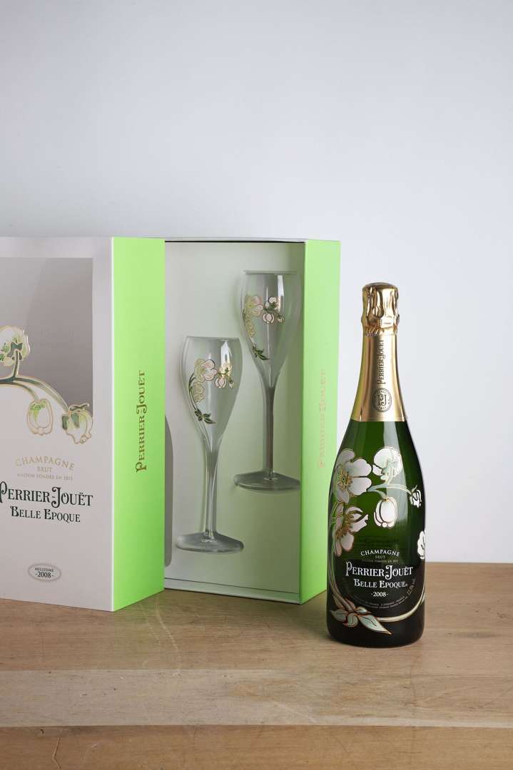 1 B CHAMPAGNE BRUT CUVÉE BELLE ÉPOQUE (Coffret d'origine avec 2 flûtes) - 2008 - Perrier-Jouët