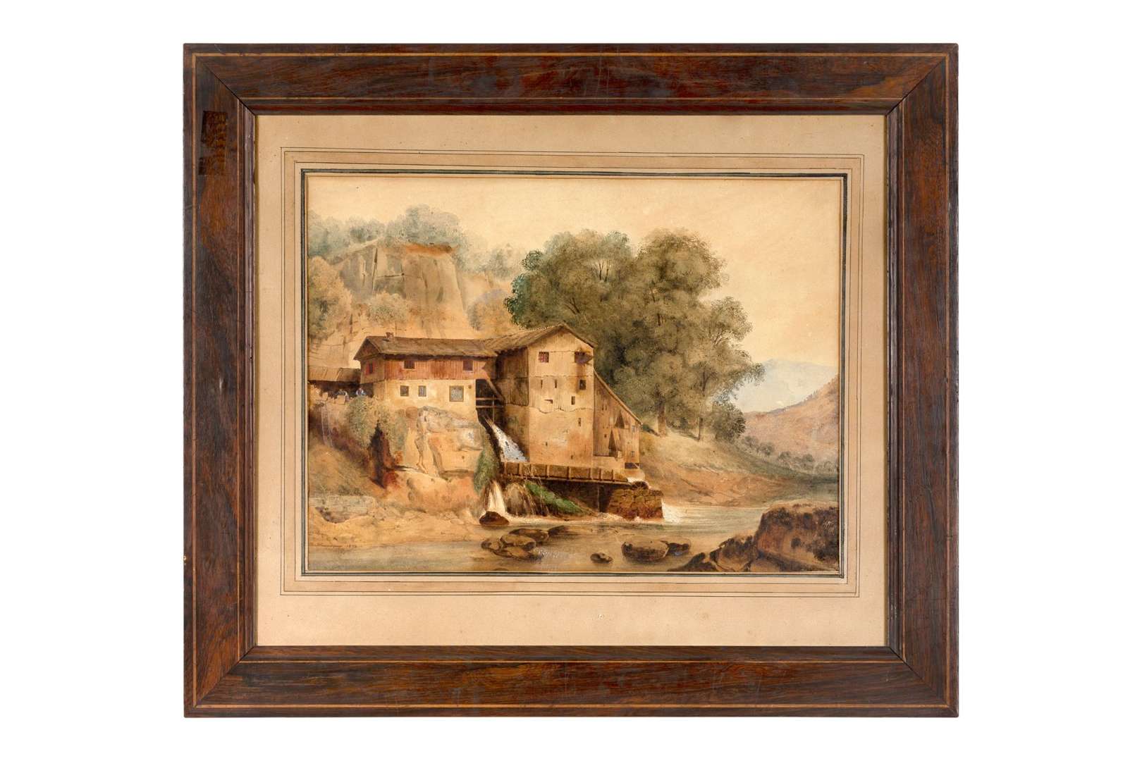 The water mill, watercolor heightened with white