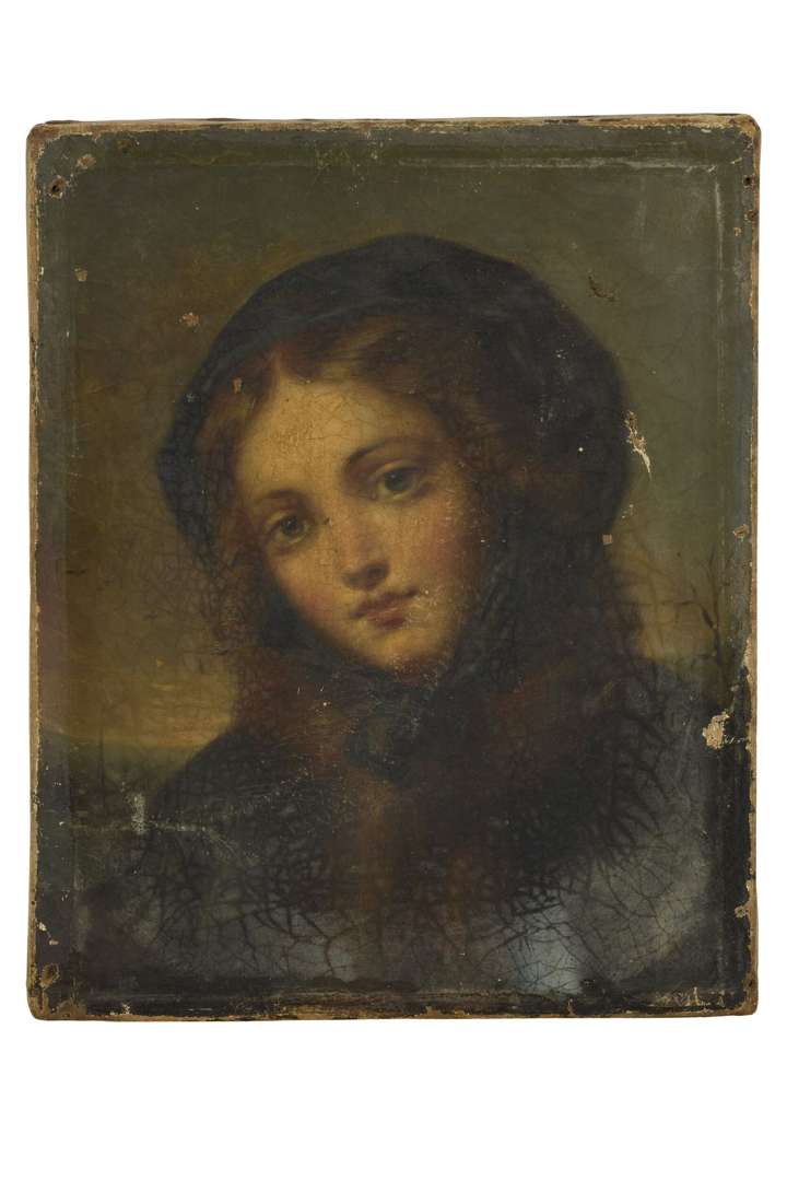 Portrait of a young woman in a black coat, original canvas