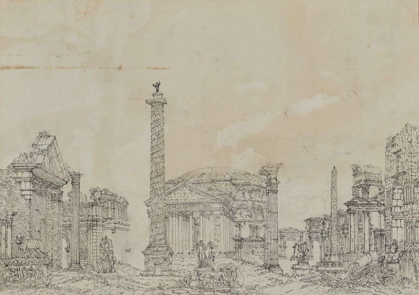 Fantasies with Roman Antiquities, pen, China ink and black chalk