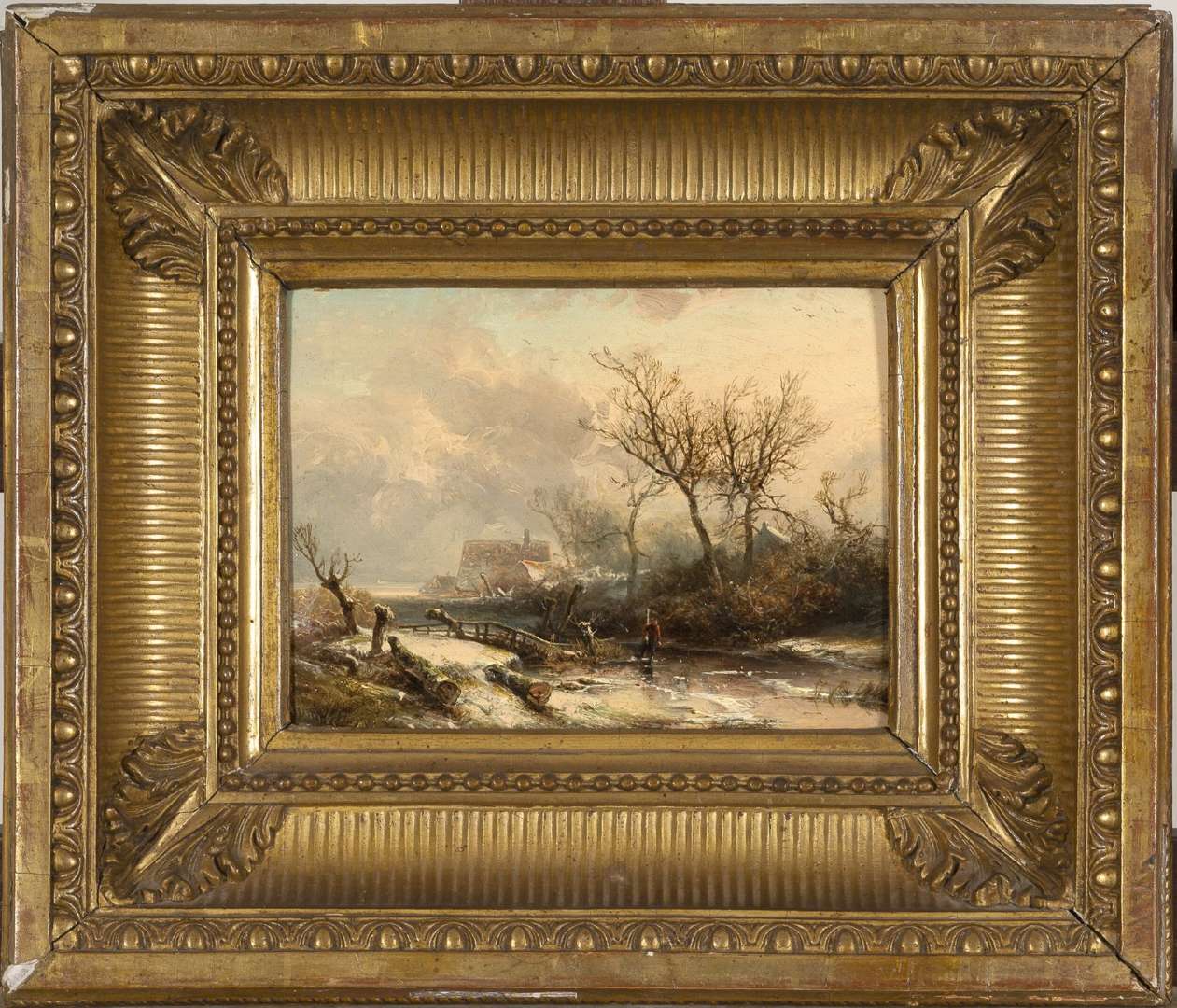 Winter Landscape with a bridge, panel