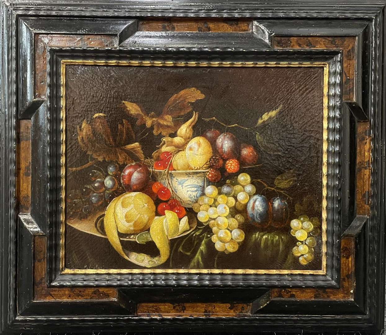 Nature morte à la coupe de porcelaine et fruits sur un entablement