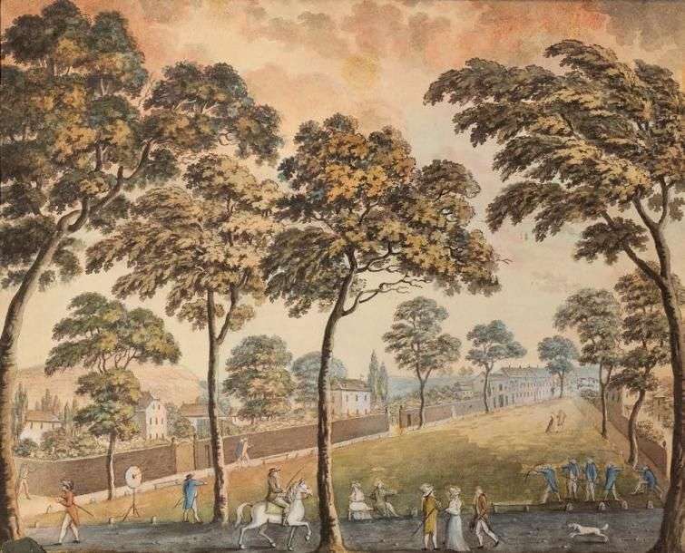 Tir à l'arc sur le mail Aquarelle et gouache sur papier 23 x 29 cm