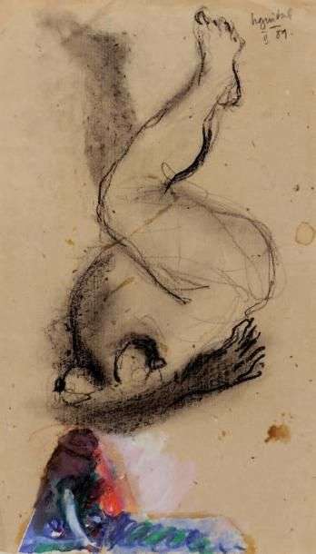 Nu Technique mixte sur papier, signée et datée "II 89" en haut à droite 47 x 28 cm