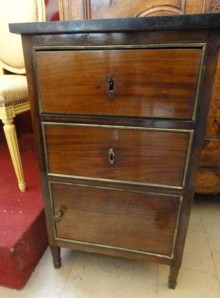 Chevet en acajou Plateau de marbre noir 19ème 77x46x38 cm