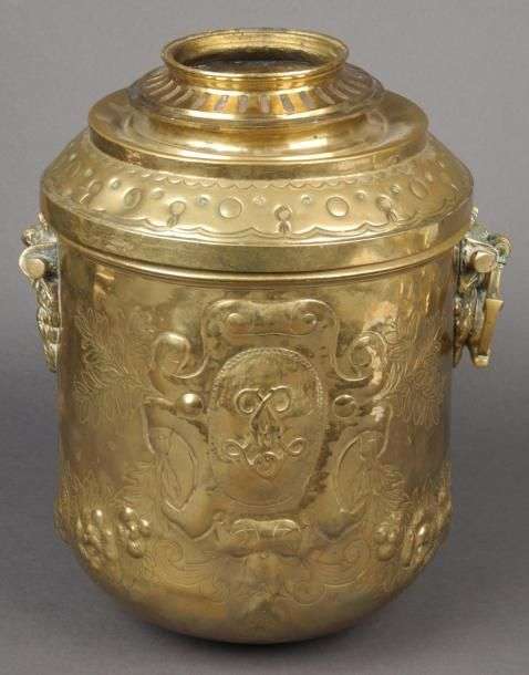 Pot en cuivre ciselé et travillé au repoussé aux armes de France et aux de