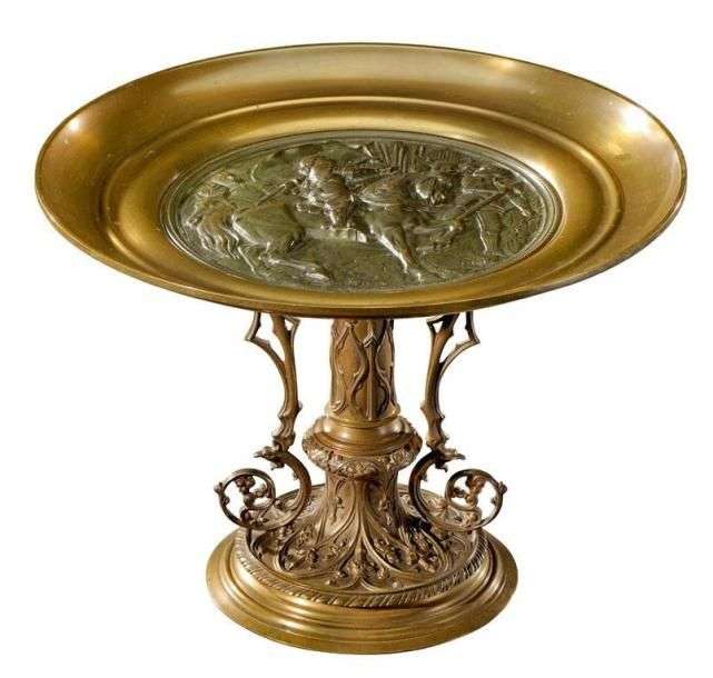 Centre de table en bronze représentant le sacre de jeanne d'arc H: 30 - D: 40 cm