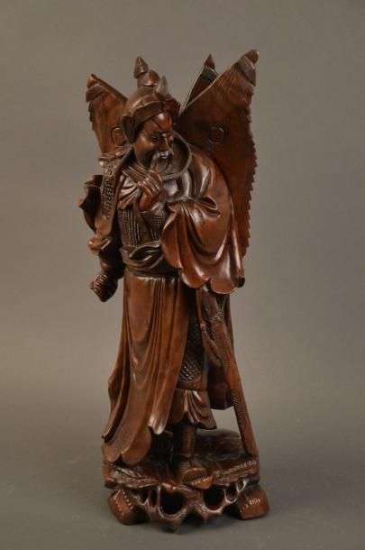 Important sujet en bois sculpté figurant un guerrier XXème siècle H: 62 cm