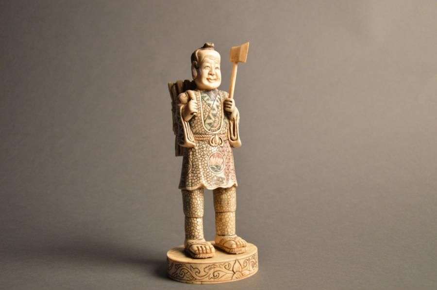 Sujet en os représentant un bucheron Début XXème siècle H: 20 cm
