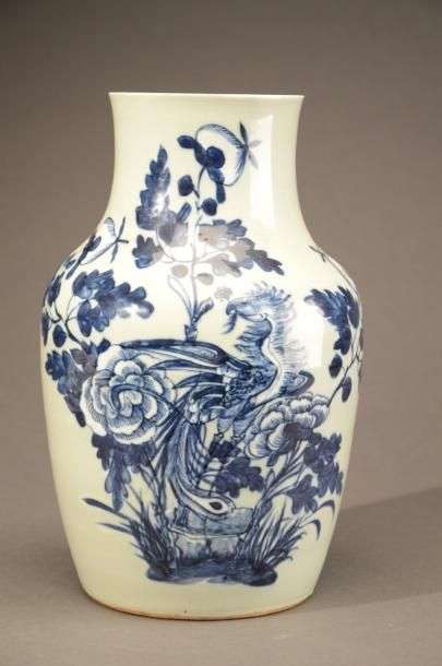 Vase balustre en porcelaine à décor en bleu d'un pheonix Début XXème siècle H: 30 cm (col rodé) 1320