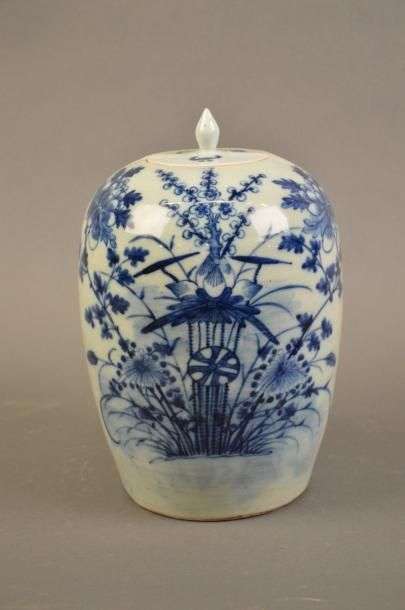 Pot à gingembre en porcelaine à décor en bleu sous couverte de feuillages stylisés Début XIXème siècle H: 32 cm