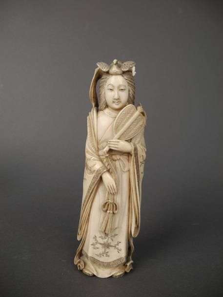 Okimono en ivoire sculpté représentant une dame de qualité XIXème siècle H: 22,5 cm (petite restauration et accident)