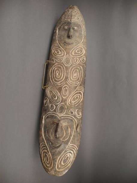 Planche du Sépik en bois sculpté de visages H: 85 cm