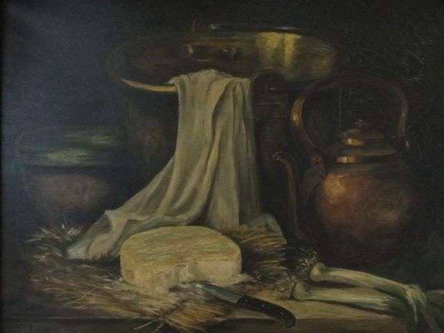 Nature morte au fromage Huile sur toile Signée en bas à gauche 65 x 81,5 cm