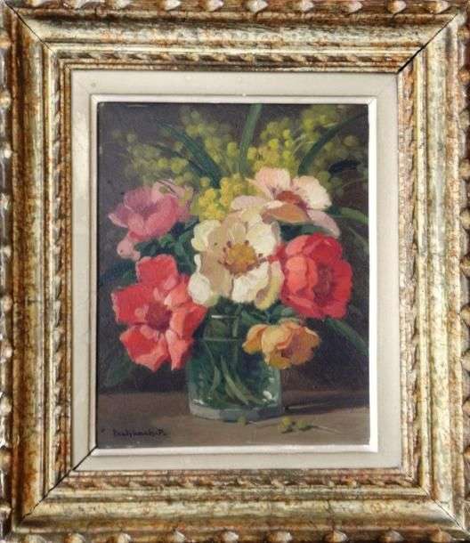 Bouquet de fleurs Huile sur isorel Signée en bas à gauche 27 x 22 cm