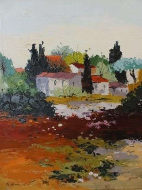Paysage Huile sur toile Signée en bas à gauche 38 x 46 cm