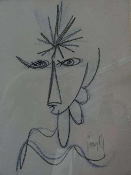Visage Pastel sur papier Signé en bas à droite 60 x 50 cm