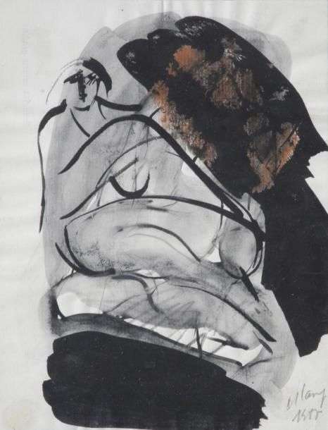 Femme Technique mixte sur papier Signée en bas à droite Datée 1987 19x15 cm