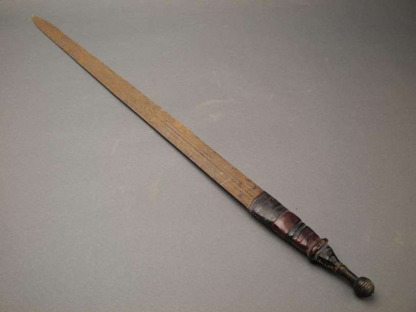 Epée probablement mérovingienne Prise gainée de cuir brun L: 87 cm