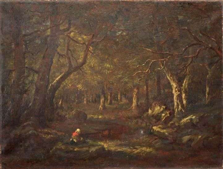 Sous-bois animé Huile sur toile 49 x 65 cm