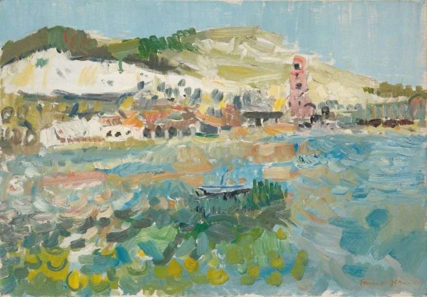 Barques sur la Saône Huile sur toile, signée en bas à droite 38 x 55 cm
