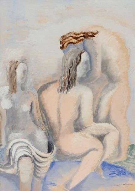 Les baigneuses, 1935 Aquarelle et gouache sur papier, signée et datée en bas à droite 54,5 x 38,5 cm (à vue) Provenance: Ancienne collection Louis Manteau Collection privée, Lyon Exposition: Zadkine, Galerie Louis Manteau, Bruxelles Ossip ZADKINE (1890-1967) Ancienne Collection Louis MANTEAU «Dessine, il n'y a vraiment que le dessin pour remettre d'aplomb. On ne peut se laisser aller à l'ennui ou à la tristesse si on dessine». Ossip Zakine. Considéré comme l'un des plus grands sculpteurs cubistes, Ossip Zadkine naît en 1890 à Vitebsk en Biélorussie. Après avoir suivi ses premiers cours de sculpture en Angleterre, il arrive à Paris en 1909. Il étudie à l'Ecole Nationale Supérieure des Beaux-Arts et travaille à la Ruche où il rencontre les principaux artistes de l'Ecole de Paris. En 1911, il expose pour la première fois ses dessins et sculptures au Salon d'Automne et au Salon des Indépendants. Il fait à cette époque la connaissance de Picasso, Matisse, Modigliani, Bourdelle, Brancusi, Lipchitz, Delaunay et Apollinaire. Après la Première Guerre Mondiale à laquelle il a participé au sein d'un régiment de la Légion Etrangère, Zadkine expose tour à tour en Italie, à Tokyo où encore à Bruxelles, à la Galerie Louis Manteau. Dans la capitale des Flandres, il réalise une fresque pour le cinéma Métropole inauguré en 1932. En 1934, il acquiert une résidence secondaire aux Arques, dans le lot, où il installe un atelier. La deuxième Guerre Mondiale le contraint à s'exiler aux Etats-Unis. Il expose alors à la Galerie Wildenstein. Il rentre en France en 1945 et enseigne à l'Académie de la Grande Chaumière jusqu'en 1958. Il réalise à cette période plusieurs sculptures à la mémoire de Van Gogh. De nombreuses rétrospectives et expositions lui sont consacrées à Paris et à l'étranger (Etats-Unis, Canada, Japon, Pays-Bas...). Ossip Zadkine meurt en 1967. La maison qu'il habitait avec sa femme rue d'Assas est léguée à la ville de Paris et transformée en musée. Elle abrite, avec sa résiden