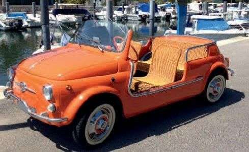 Fiat 500 D Jolly Beach Ghia La 500 est véritablement un mythe de l'automobile. La toute première série de Fiat Nuova 500 est présentée à Turin le 4 juillet 1957. Elle était équipée d'un moteur bicylindre vertical refroidi par air de 479 cm³, disposé à l'arrière, délivrant 13 ch et autorisant une vitesse maximale de 85 km/h, avec une consommation de seulement 4,5 litres aux 100 km. Simple et économique, elle connaît immédiatement un franc succès. L'auto ne va pas cesser d'évoluer pour être toujours plus performante, plus moderne ou plus sportive avec l'aide du sorcier Abarth. Fort de ce succès croissant Fiat déclinera ensuite toutes sortes de carrosseries. C'est toujours en 1957, sous l'influence de Gianni Agnelli que Luigi Segre, chef styliste de la «Carrozzeria Ghia» de Turin développera l'idée d'un véhicule ultra ludique capable d'arpenter les routes bordant la méditerranée et d'être «bien vu» dans les ports de yachting. C'est ainsi que la 500 fut transformée en un petit buggy de plage. Initialement appelée «La Spiaggina» ou la «plagette», cette variante de la 500 qui en reprenait la mécanique était dépourvue de toit, de portes et dotée d'un pare-brise raccourci. Elle fut rapidement rebaptisée Jolly, un nom signifiant Joker en Italien, et dont la consonance anglo-saxonne était bien plus en phase avec sa destinée commerciale internationale. La recette est simple: pas de porte mais une ligne de carrosserie échancrée, un toit en toile légère faisant office de capote et des sièges en osier parfaits pour la plage. Côté châssis, des renforts ont du être ajoutés à la voiture pour parer la réduction de la rigidité. Bien que chère à son époque, elle connue un vrai succès auprès des populations aisées fréquentant les stations balnéaires les plus en vogue de l'époque. C'est au total moins de 500 «Jolly» qui auraient été produites sur une période d'environ 15 ans et il est fort probable que le nombre d'exemplaires encore roulants soit aujourd'hui beaucoup plus faible. Notre e