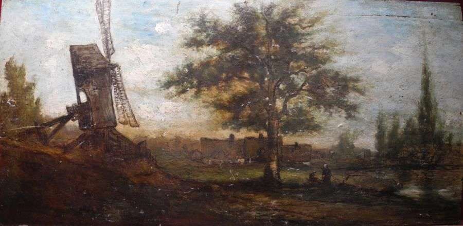 Moulin Huile sur panneau (non signée) 27 x 54,5 cm