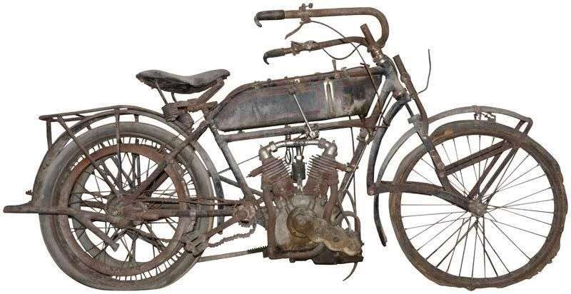 CAR La fiabilité des cyclomoteurs Peugeot n'étant plus à prouver en 1912, la marque au Lion va asseoir sa réputation en produisant dès 1913, une moto à moteur bicylindres double ACT, de huit soupapes qui brillera sur les circuits Français: la Peugeot 350 type Paris-Nice. Celle-ci remportera le Paris- Nice de 1913, dans sa catégorie, ce qui sera un argument de vente considérable pour le constructeur. Cette moto ne sera qu'une modernisation de la «Moto Légère 2 1/2 HP», conservant d'ailleurs sa transmission directe par courroie et au niveau de la fourche, sa suspension avant «Truffault» dite à «roue poussée». La belle sera facilement reconnaissable par son élégant réservoir à flancs plats incliné à l'arrière, de couleur noir et amarante souligné d'un filet d'or, ainsi que par son large guidon. Son cadre simple sera désormais doté d'un bicylindre en V 4 temps de 350 cm3 à soupapes latérales et d'un allumage par magnéto. Peugeot qui produira cette moto jusqu'en 1915 proposera dès 1914 diverses options comme, un moyeu arrière Peugeot avec embrayage, un moyeu Anglais Armstrong à trois vitesses sélectionnées par levier au dessus du réservoir ou encore le couplage avec un side-car. Acquise par le grand-père de l'actuel propriétaire, à la veille de la 1ere Guerre Mondiale, cette moto est conservée depuis toujours dans la propriété familiale en Touraine. Notre Paris- Nice est à restaurer intégralement. Dans un état «pur jus», la peinture de son réservoir, de son cadre et de ses gardes boues est toujours visible malgré une rouille superficielle. La moto qui semble complète, accompagnée d'un side-car, est introuvable dans un tel état d'authenticité. Un bicylindre en V Un réservoir à flancs plats Une moto victorieuse «Une fiabilité prouvée et éprouvée» Marque: Peugeot Modèle: Type Paris-Nice Millésime: 1913 à 1915 Motorisation: 2 cylindres en V Cylindrée: 344.8 cm3 Vendue sans carte grise