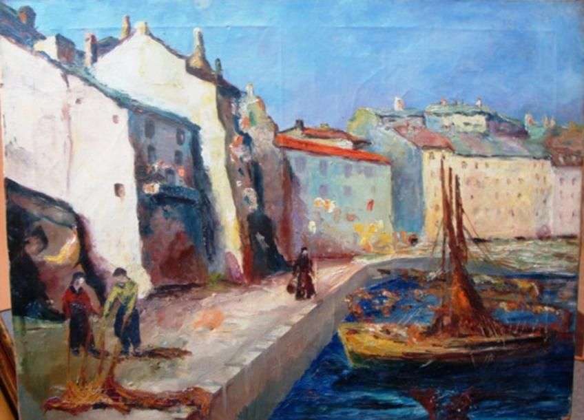 Vue du port de Martigues Huile sur toile 46 x 61cm sans cadre