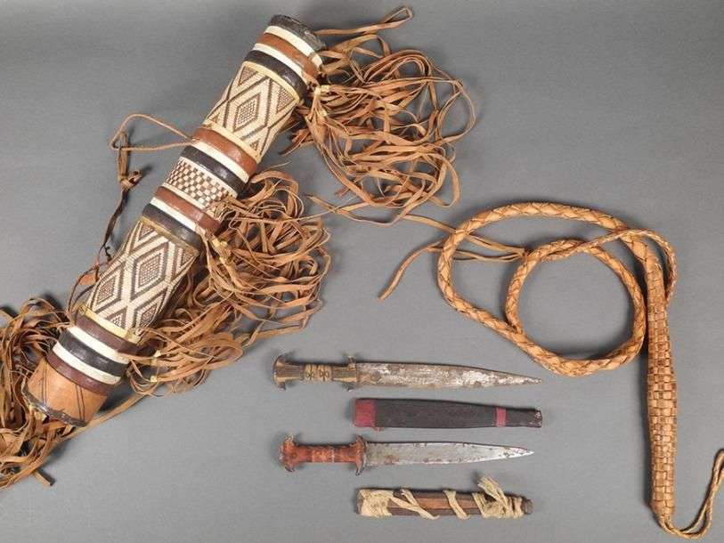 Lot africain moderne: fouet, carquois, deux poignars. ABE