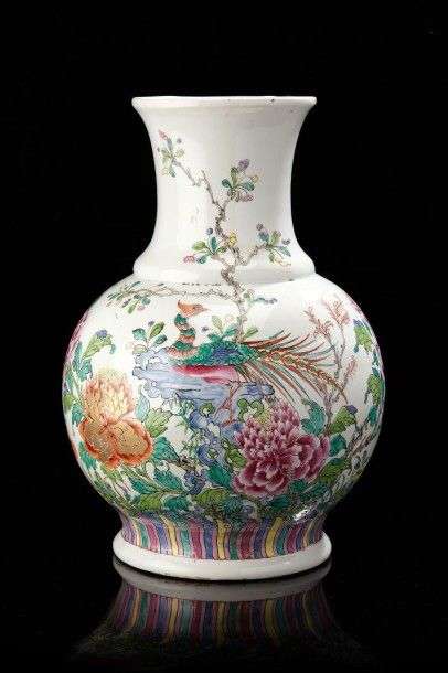 Vase en porcelaine à décor dans le goût de la famille rose d'un phénix per