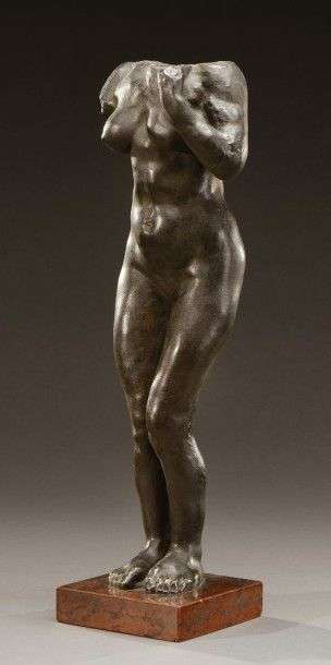 Etude en bronze à patine noire. Elle repose sur une base carrée marbre brun. Signée "Hoetger", cachet du fondeur "Eug Blot Paris" et numérotée. Fonte d'édition ancienne, vers 1930. H: 41 cm A black patina bronze study on a square marble base. Signed "Hoetger", foundry stamp "Eug Blot Paris" and numbered. Ancient cast, circa 1930. H: 16 ¼ in