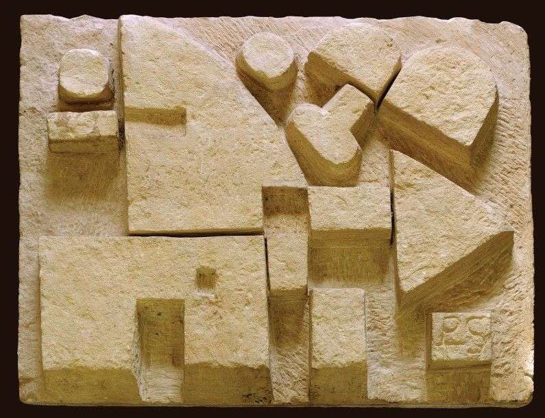 "Le Chasseur" Important bas-relief en taille directe sur pierre calcaire d'Euville Lorraine à décor abstrait. Signée "Pierre Szekely" monogramme de l'artiste "PS" et datée 1960. H: 88 cm L: 110 cm P: 19 cm A large, directly carved abstract bas relief on Euville Lorraine limestone. Signed "Pierre Szekely" artist's monogram "PS" and dated 1960. H: 35 ¾ in L: 43 ¼ in D: 7 ½ in Bibliographie: Pierre Karinthy, Catalogue raisonné des oeuvres du sculpteur Pierre Székely, modèle référencé. Ce lot sera vendu sous désignation
