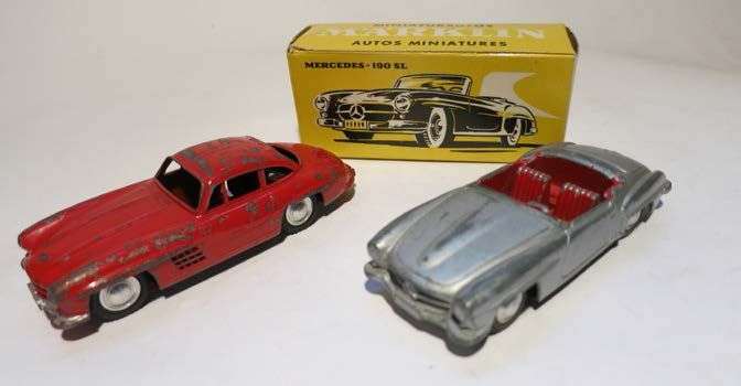 Ensemble de 2 voitures comprenant une Mercedes 190 SL ref 8025 en boîte, une Mercedes 300 SL ref 8019 sans boîte, Mauvais état