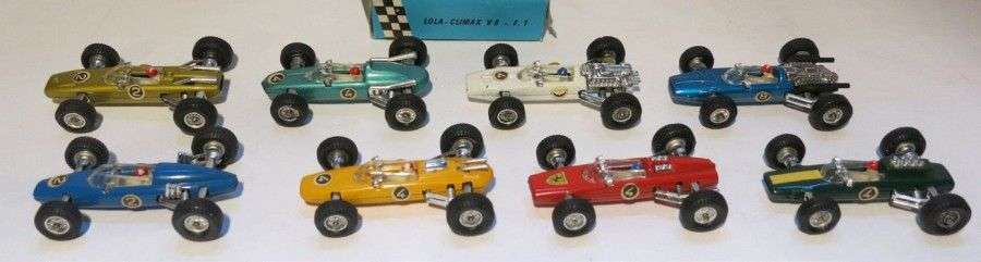 Ensemble de 8 voitures comprenant une Lola Climax F1 en boîte, une Lotus Climax F1, une Honda V12, une Eagle, une Cooper Maserati, une BRM H16, une BRM F1, une Ferrari, Bon état