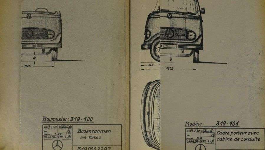 Lot de 2 plans des camions Mercedes Benz 1958 type 319 100 et 319 101