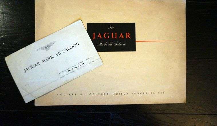 Catalogue Jaguar Mark VII Saloon équipée du célèbre moteur Jaguar XK 120, Très bon état, format italien 36x25 cm, feuillet intérieur de l'importateur Ch. Delecroix
