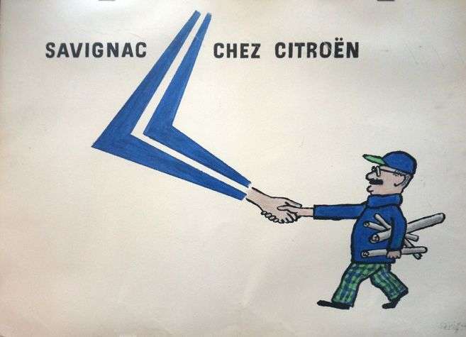 Affiche Savignac chez Citroën signée Savignac, sous plexiglass, 72X52cm
