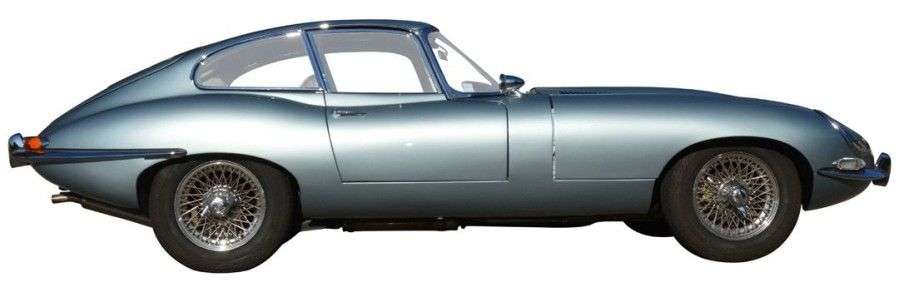 TYPE E 3.8 COUPE «Le fruit d'un passé glorieux et l'avenir de Jaguar» La Jaguar type E comme la XK qu'elle remplace va établir une nouvelle référence en matière de voiture de sport. Hormis son moteur qui est une évolution du bloc existant, tout le reste de la voiture est issu d'un développement nouveau. Son design époustouflant tout d'abord est une évolution de la Type D de compétition, qui favorise une bonne stabilité et pénétration dans l'air. Les développements ont commencé en 1957 et ce qui va faire le succès de la type E au-delà de son design, ce sont ses performances exceptionnelles pour l'époque lui permettant de rivaliser avec des concurrentes beaucoup plus chères. La première série de Type E débutera sa carrière dotée d'un moteur 3.8 litres jusqu'en 1964 puis en 1965 elle recevra un 4.2 litres de cylindrée développant 265 chevaux. Disponible d'abord en coupé ou en cabriolet une alternative en 2+2 sera proposée à partir de 1966. Esthétiquement c'est la seule des Type E à arborer des phares couverts, elle possède des demi-pare-chocs avant et arrière. Les premiers modèles avaient un tableau de bord et une console centrale en aluminium bouchonné ainsi que des sièges baquets et une boîte de vitesses Moss. A partir de 1964, avec le passage à la 4.2, les sièges baquets ont fait place à des sièges inclinables plus confortables, le tableau de bord et la console centrale ont été recouverts de vinyle noir au lieu de l'aluminium bouchonné, la boîte Moss a été remplacée par une boîte Jaguar synchronisée. La type E évoluera au fil du temps pour répondre aux exigences commerciales et légales des Etats Unis notamment. Une série intermédiaire dite 1,5 sera construite en 1967. Elle fera la transition avec les deux séries conservant les éléments de la 1 mais avec 2 phares découverts, un intérieur et des carburateurs de série 2. La série 2 arrive en 1968. Esthétiquement les différences portaient sur l'absence de couverture des phares, des pare-chocs plus enveloppants et plus h