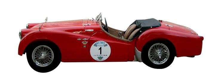 TR2 «PORTES LONGUES» «La naissance du mythe dans sa version la plus rare» L'entreprise Standard rachète Triumph en 1944. Avant la guerre, aucune de ces deux marques n'avait produit de véritables sportives performantes en quantité importante. Après plusieurs essais et quelques milliers d'exemplaires vendus, un nouveau modèle baptisé ultérieurement TR1 queue courte verra le jour au début des années 50. Il est construit sur la base d'un châssis d'avant-guerre modifié et bénéficie d'un moteur Vanguard de 75 chevaux. En mars 1953, après un important travail de mise au point du châssis et du moteur, la TR2 sera présentée au salon de Genève avec un moteur de 90 chevaux muni de deux carburateurs. La boîte de vitesses à quatre rapports de la Vanguard entraînant les roues arrière est plutôt agréable à manier. La voiture connaît par la suite quelques améliorations et démontre sa sportivité dans des compétitions de renom comme la Coupe des Alpes ou Le Mans. L'objectif de la marque était atteint, proposer une voiture économe à l'usage, robuste et facile à entretenir, mais pouvant proposer des performances significatives. Une manière en somme de proposer une voiture de sport accessible et réputée, venant directement concurrencer les autres roadsters anglais proposés par MG et Jaguar. Et le marché américain, principale cible de Triumph, va rapidement s'intéresser au modèle moins cher que ses concurrents de l'époque. Pesant moins d'une tonne, la TR2 distille un maximum de sensations à son bord. La TR2 sera remplacée par la TR3 en octobre 1955, cette dernière reprenant pour partie les éléments de son aînée. La TR2 aura permis de lancer une longue série de roadsters anglais sportifs. Fabriquée à seulement 8.628 exemplaires, elle est relativement rare en France, ayant surtout connu les routes américaines. Le modèle présenté est une TR2 de 1954. Cette très belle voiture est une version rare et recherchée de la 1ère série des TR2 avec ses «portes longues». La deuxième série de TR2 verra