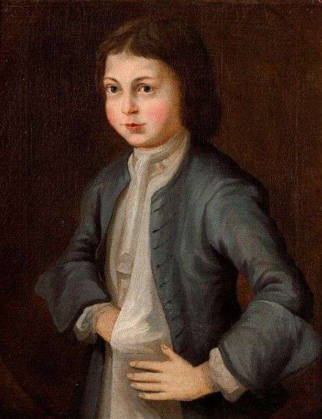 Portrait d'enfant à la veste bleue Huile sur toile 64 x 52 cm
