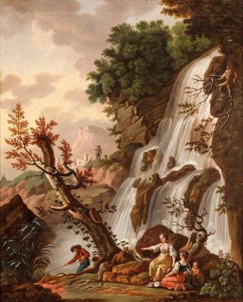 Les bergères et le pêcheur Huile sur toile 57 x 46 cm
