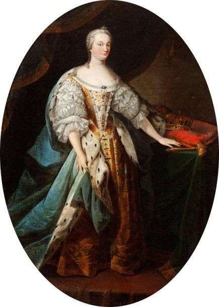Portrait présumé de Marie-Thérèse d'Autriche Huile sur toile de forme ovale 67 x 49 cm